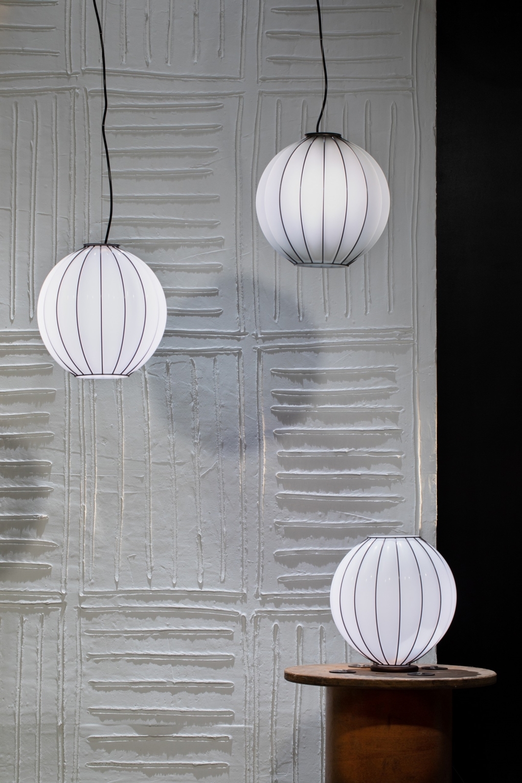 SIRU - Candeeiro suspenso SFERA 1xE27/60W/230V diâmetro 42 cm preto/branco Vidro veneziano caracteriza-se por um design agradável e funcional.  Uma lâmpada com casquilho E27 é adequada para a iluminação Aqui, pode comprar outras lâmpadas a preços vantajosos. Terá um complemento interessante para a sua casa.
