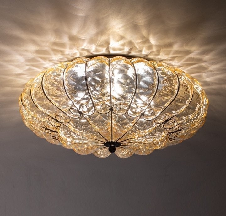SIRU - Iluminação de teto SOLE 3xE14/40W/230V diâmetro 31 cm bege/cromado mate Vidro veneziano