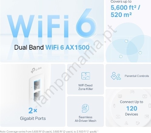 • Proporciona cobertura robusta sem zonas de sinal fraco, graças à arquitectura mesh.