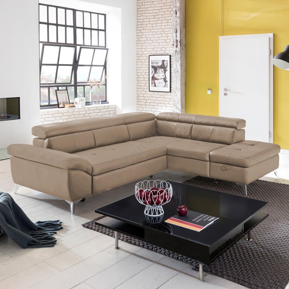 • Sofá de canto em L reclinável em couro SALERNO II, lado direito, bege