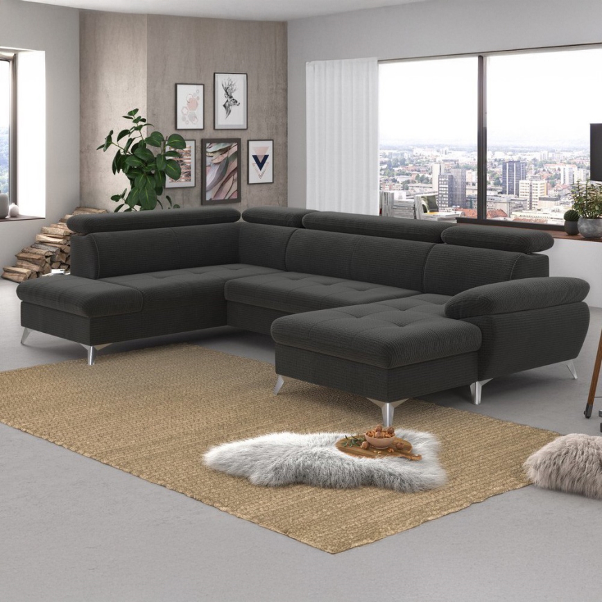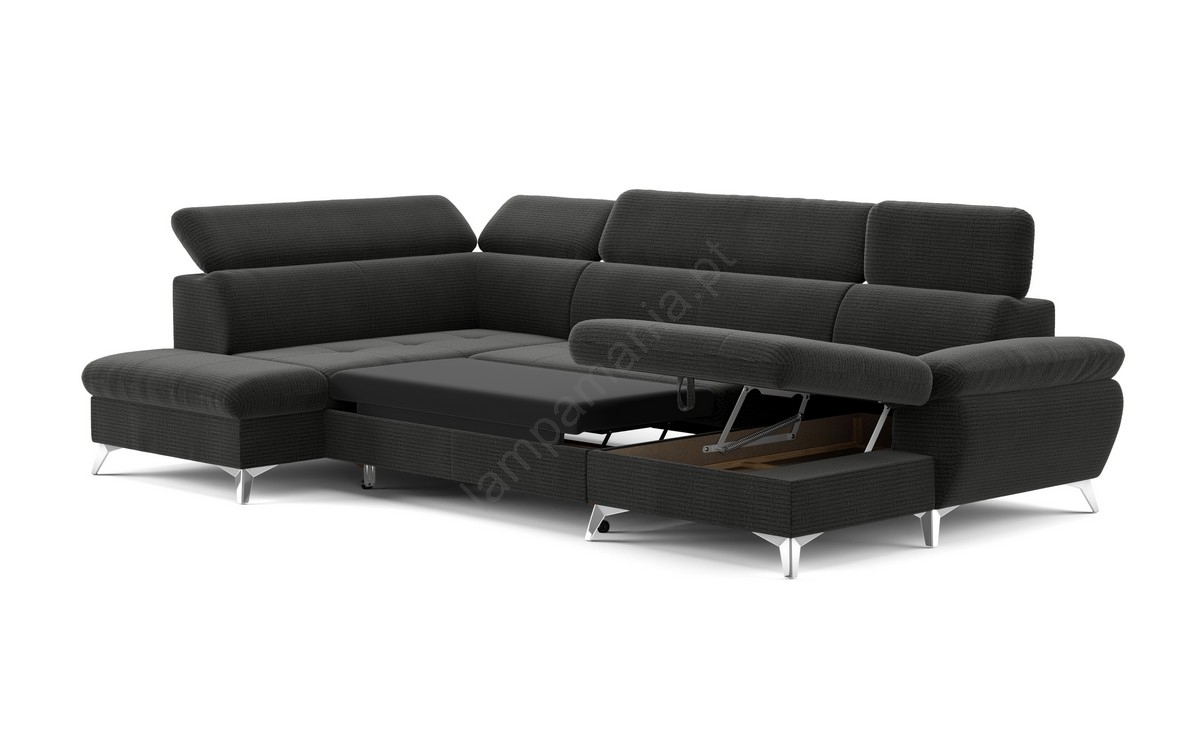 Sofá de canto reclinável em U CATANIA com espaço de armazenamento, lado esquerdo, grafite