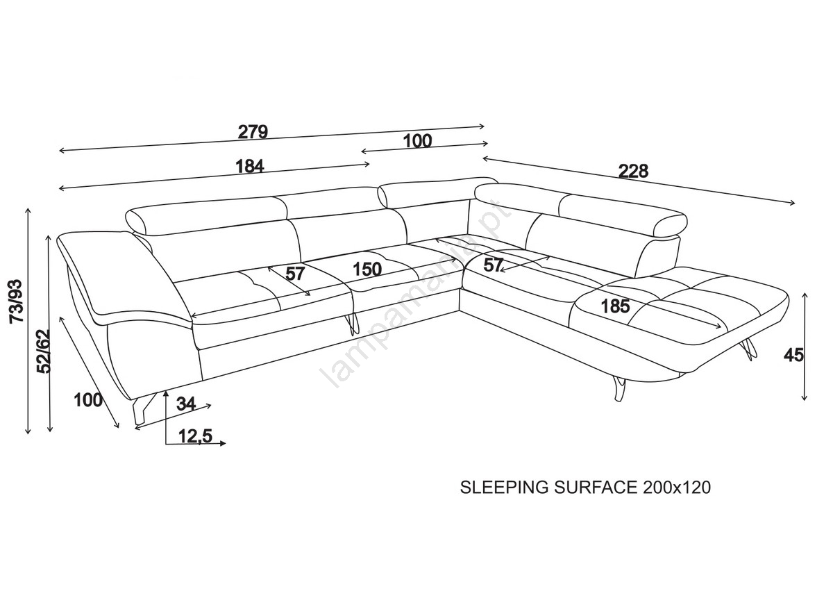 • O sofá está equipado com um espaço de armazenamento extra grande, oferecendo amplo espaço para cobertores, almofadas e outros itens essenciais.
