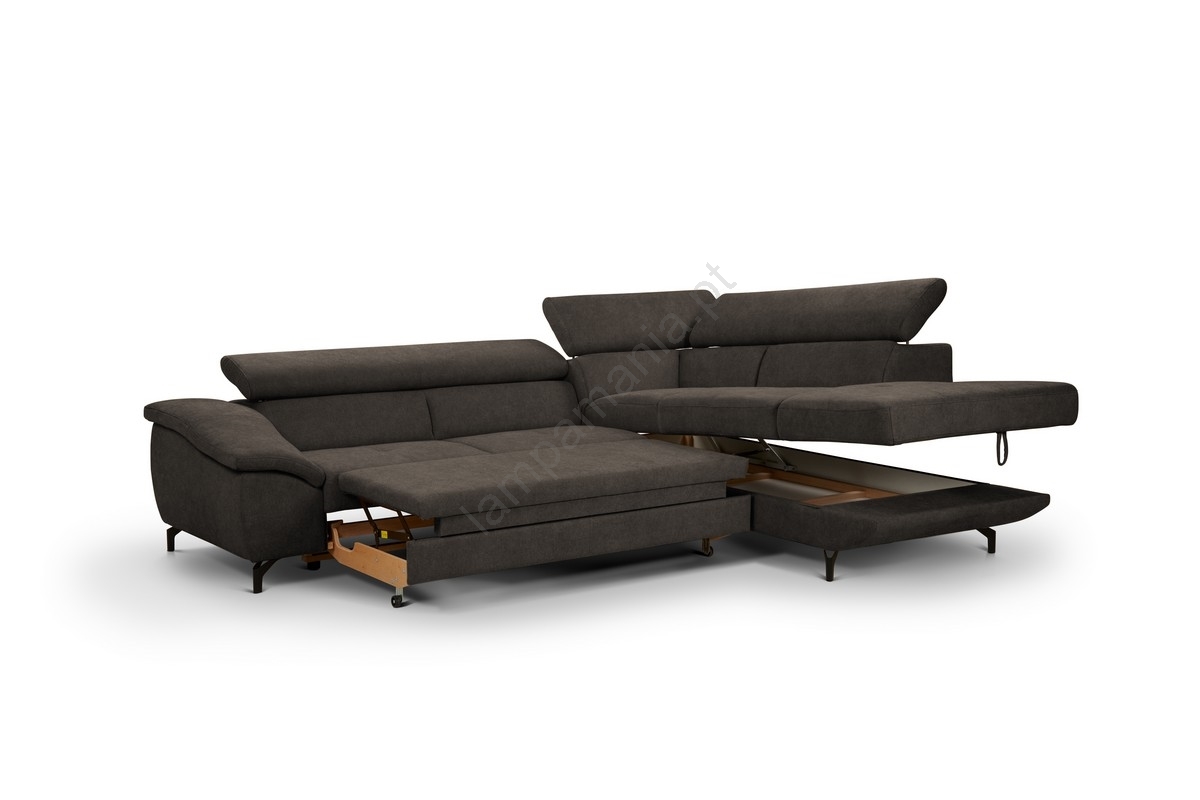 • O sofá está equipado com um espaço de armazenamento extra grande, oferecendo amplo espaço para cobertores, almofadas e outros itens essenciais.