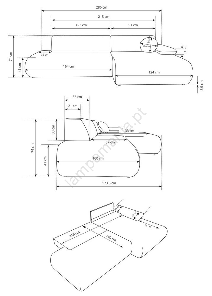 • O sofá dispõe de generoso compartimento de arrumação para guardar a roupa de cama e outros artigos sazonais.