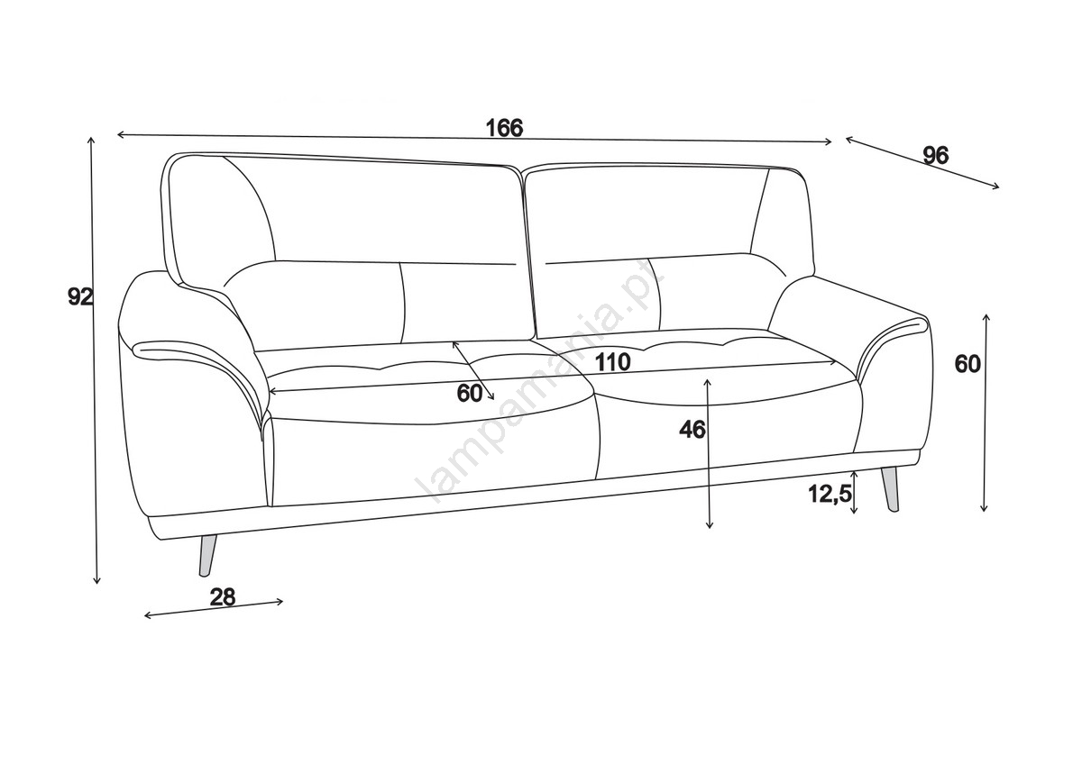 • Com uma altura confortável do assento de 46 cm e profundidade de 60 cm, garante uma posição ergonômica e relaxante.