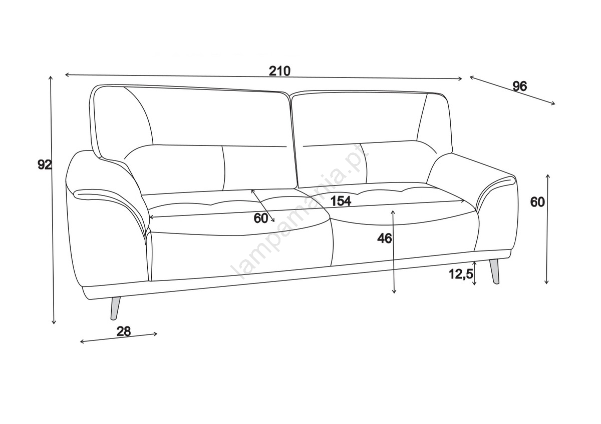 • Com uma altura de assento confortável de 46 cm e profundidade de 60 cm, oferece uma experiência ergonômica e relaxante.