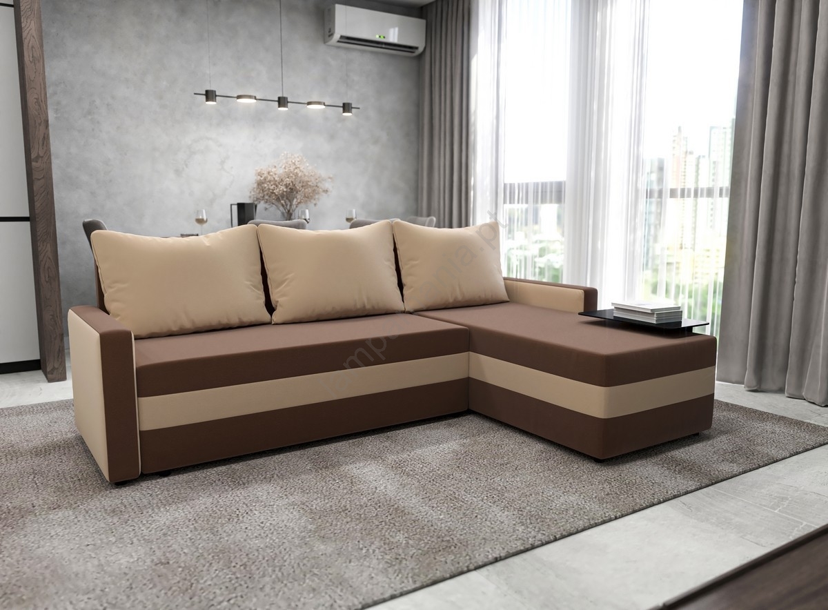 Sofá-cama de canto em L estofado BRISTOL, reversível, castanho/bege