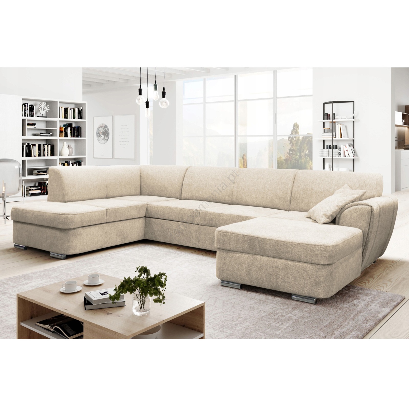 • Sofá-cama de canto em U com espaço de arrumação SERPA, versão esquerda, bege
