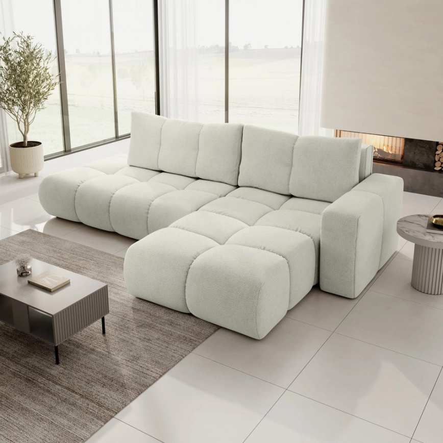 • Sofá-cama de canto em L ALMADA, estofado com arrumação, canto direito, bege claro
