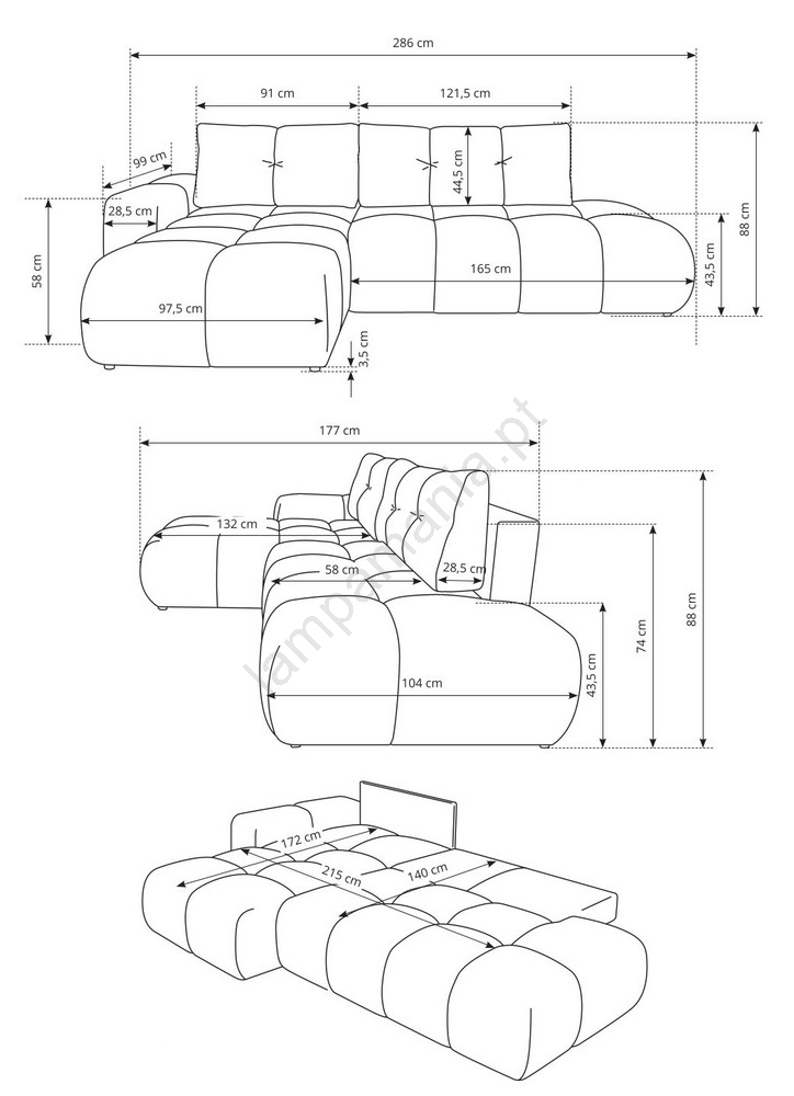 • Sofá-cama de canto moderno ALMADA (canto direito) é a escolha ideal para quem procura uma combinação de estilo, conforto e praticidade.