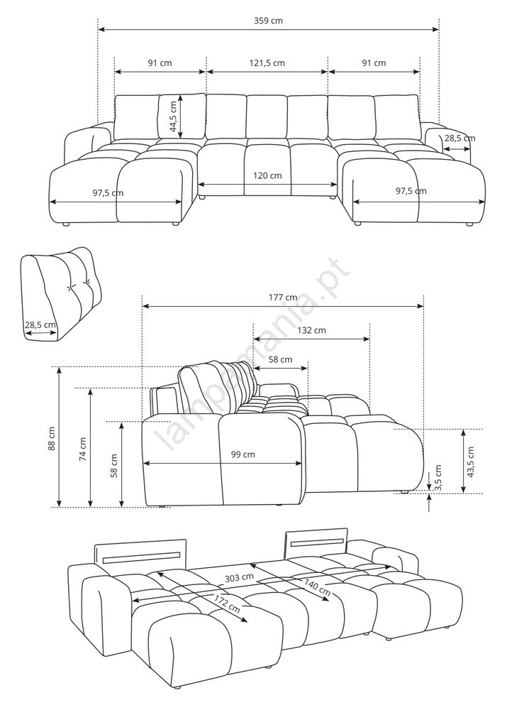 • Sofá-cama moderno em U ALMADA é a escolha ideal para quem procura a combinação de estilo, conforto e praticidade.