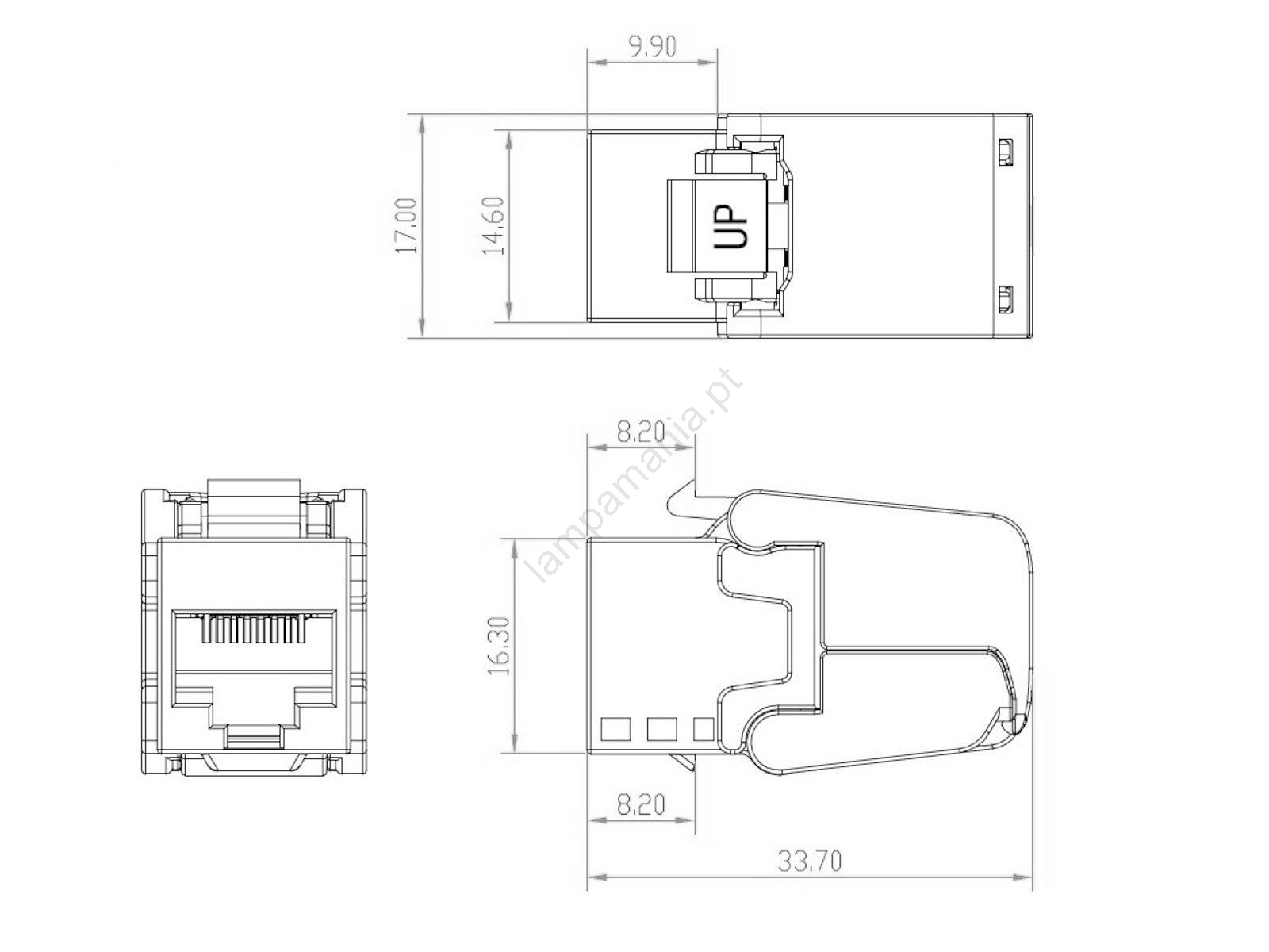 • Dimensões do keystone conforme a norma EN 60603-7.