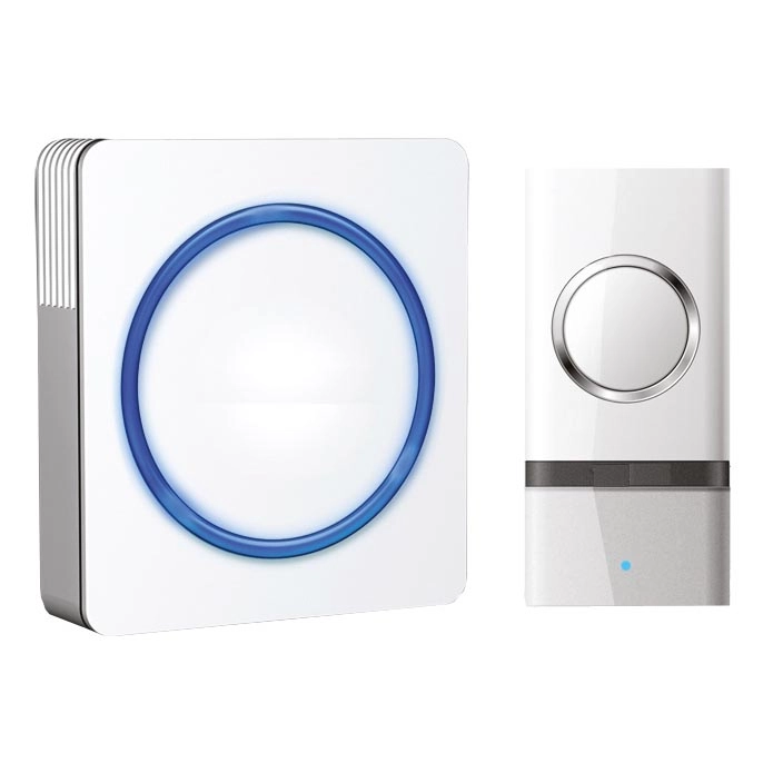 • Alimentação: Botão: 1 x bateria 12 V (LR23A) incluída. Campainha: AC 230V - plug-in.