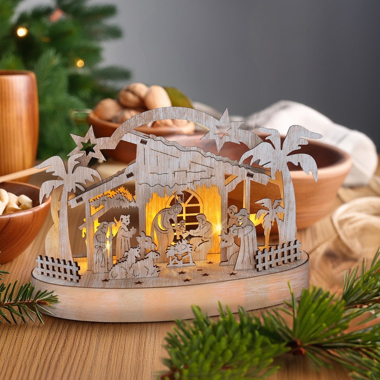 Decoração de Natal LED LED/2xAA/branco quente presépio