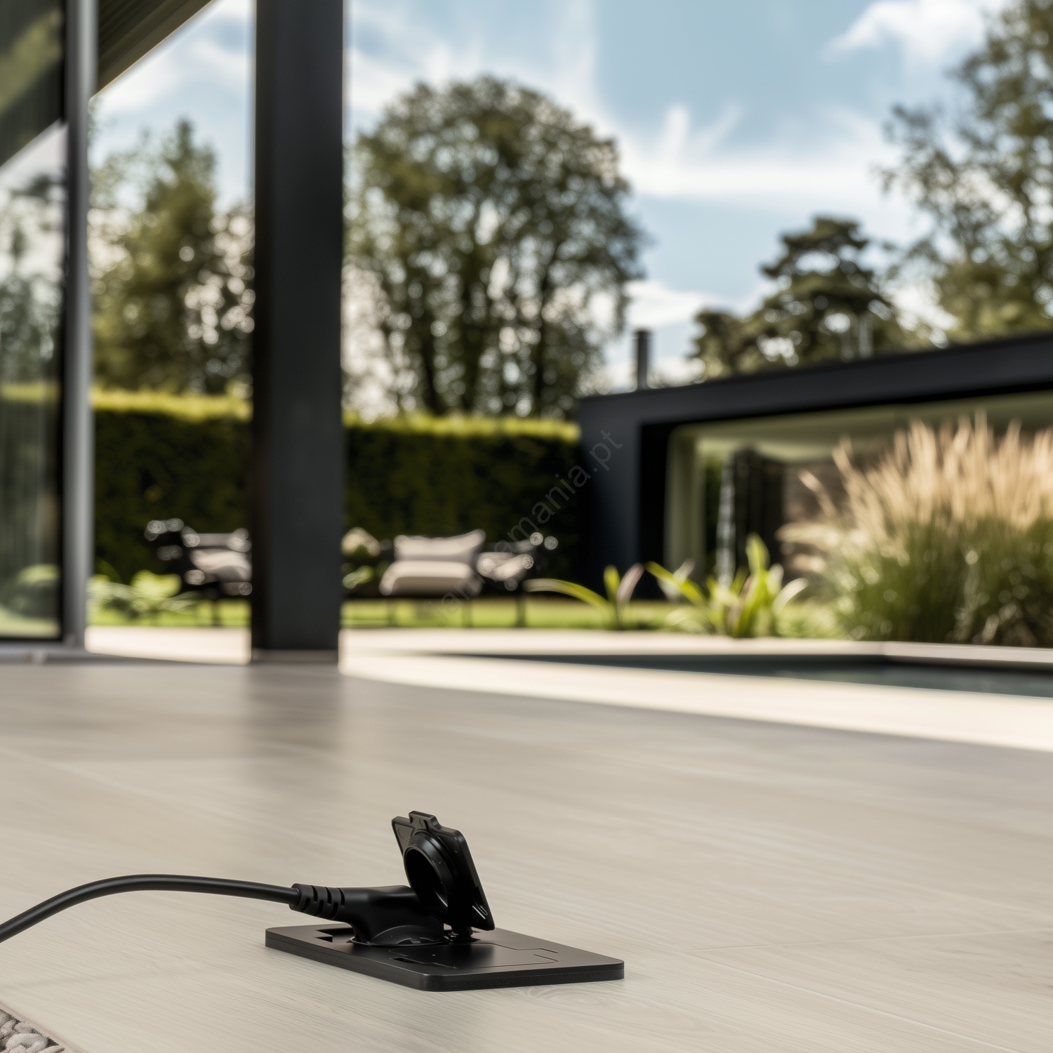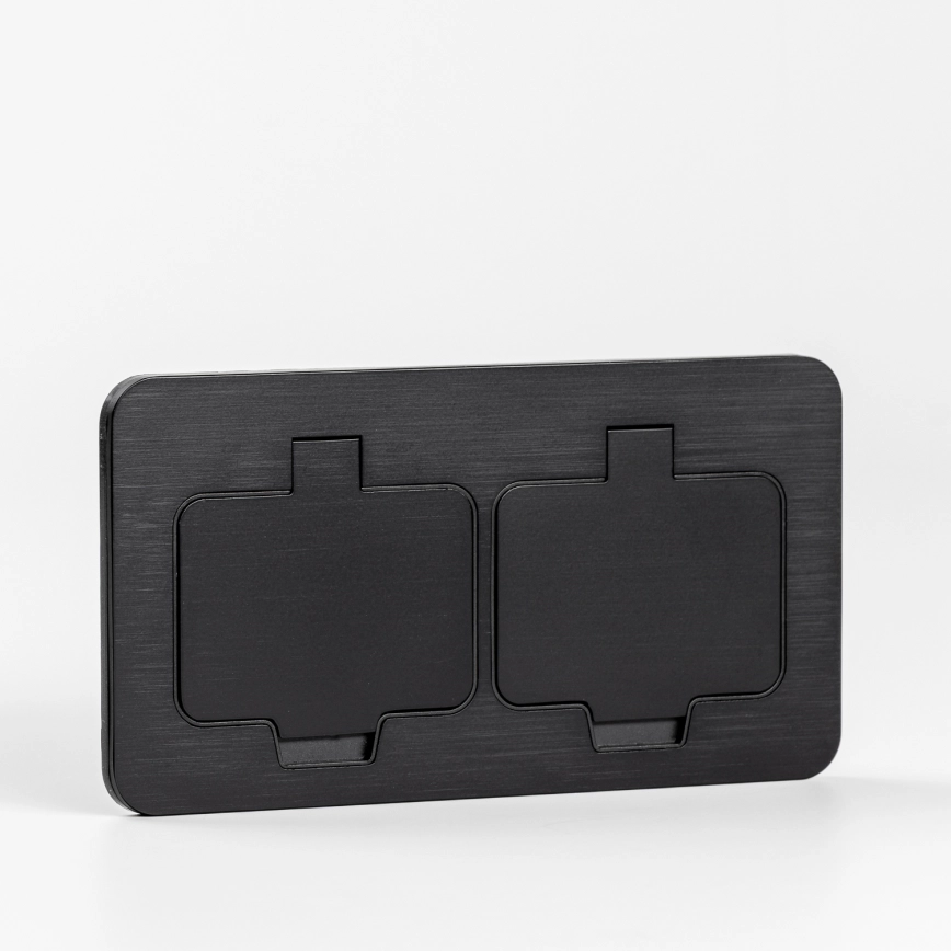 Tomada dupla de chão encastrada para exterior IP55 preta retangular