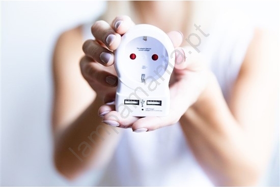 • Adaptador de viagem para residentes da Europa que viajam para o Reino Unido e países com padrão UK.