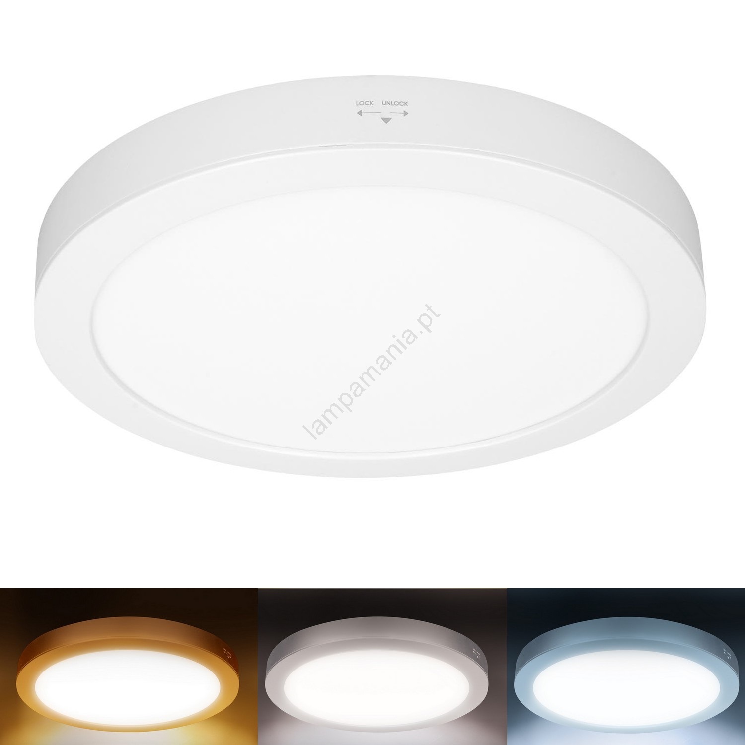 Painel LED 2 em 1 sobrepor/encastrável 18W/230V 3000/4000/6000K Ø22,5 cm IP54 branco