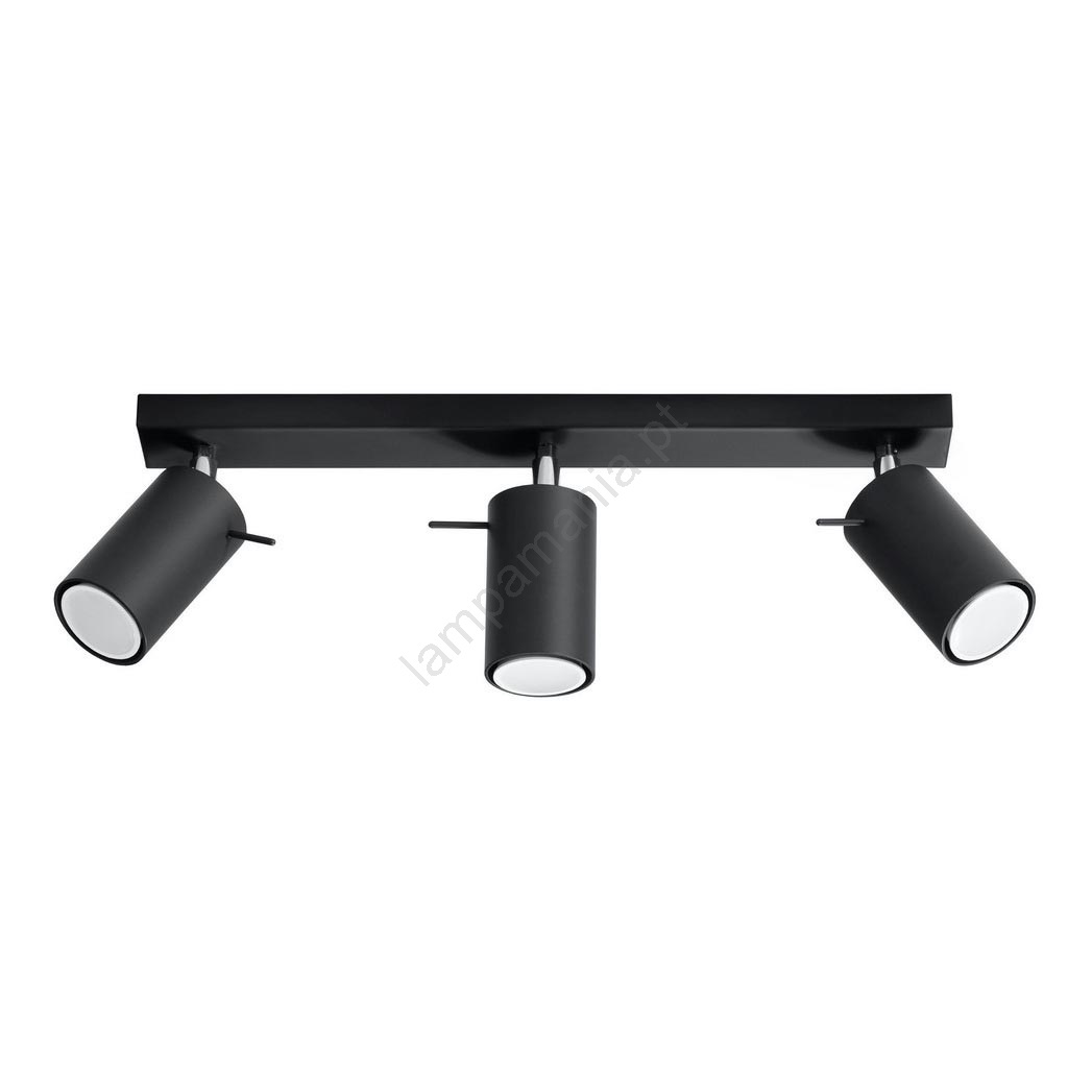 Foco RING 3 3xGU10/10W/230V preto caracteriza-se por um design agradável e funcional.  Uma lâmpada com casquilho GU10 é adequada para a iluminação Aqui, pode comprar outras lâmpadas a preços vantajosos. Terá um complemento interessante para a sua casa.