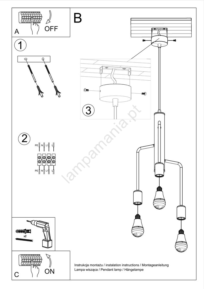 Candelabro num fio DUOMO 3M 3xE27/60W/230V preto antigo