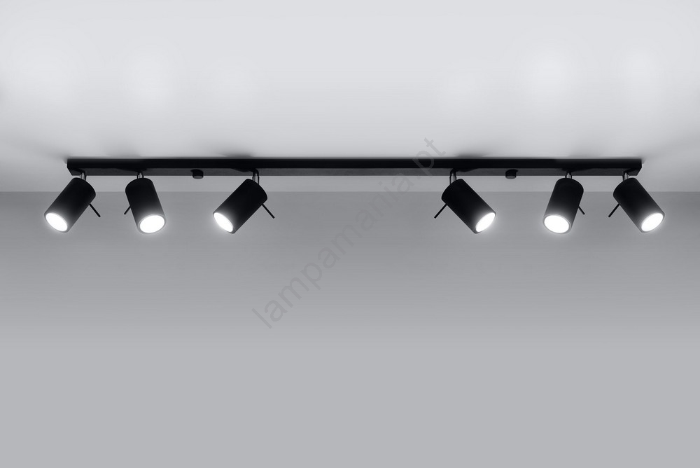 Foco RING 6L 6xGU10/10W/230V preto caracteriza-se por um design agradável e funcional.  Uma lâmpada com casquilho GU10 é adequada para a iluminação Aqui, pode comprar outras lâmpadas a preços vantajosos. Terá um complemento interessante para a sua casa.