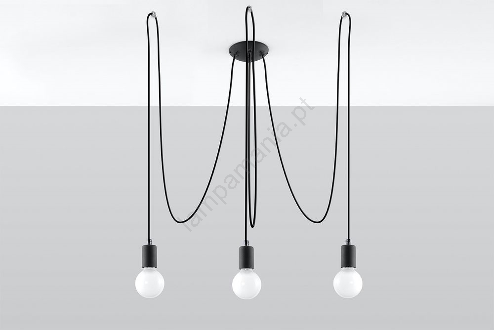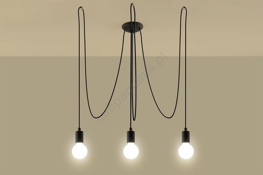 Candeeiro suspenso EDISON 3 3xE27/60W/230V aranha preto caracteriza-se por um design agradável e funcional.  Uma lâmpada com casquilho E27 é adequada para a iluminação Aqui, pode comprar outras lâmpadas a preços vantajosos. Terá um complemento interessante para a sua casa.