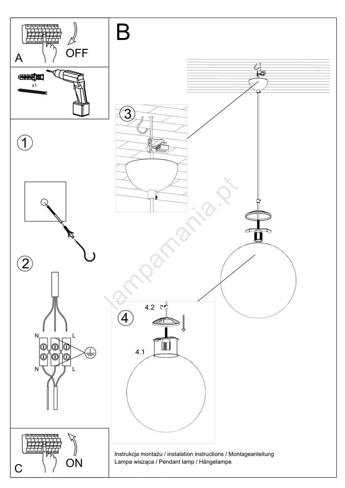 Candelabro suspenso TOYA 1xE27/60W/230V d. 30 cm caracteriza-se por um design agradável e funcional.  Uma lâmpada com casquilho E27 é adequada para a iluminação Aqui, pode comprar outras lâmpadas a preços vantajosos. Terá um complemento interessante para a sua casa.