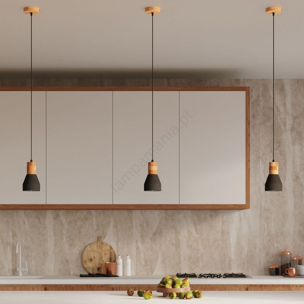 Candelabro suspenso QUBIC 1xE27/60W/230V betão/Bétula/faia/preto caracteriza-se por um design agradável e funcional.  Uma lâmpada com casquilho E27 é adequada para a iluminação Aqui, pode comprar outras lâmpadas a preços vantajosos. Terá um complemento interessante para a sua casa.