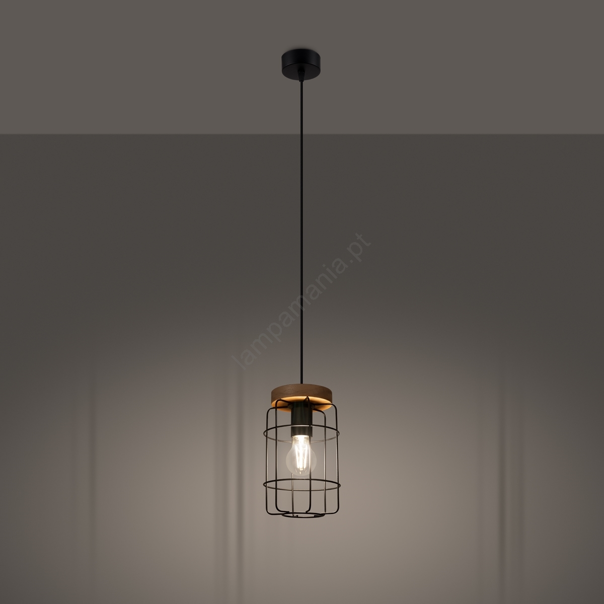 Candelabro suspenso GOTTO 1xE27/15W/230V preto/faia caracteriza-se por um design agradável e funcional.  Uma lâmpada com casquilho E27 é adequada para a iluminação Aqui, pode comprar outras lâmpadas a preços vantajosos. Terá um complemento interessante para a sua casa.