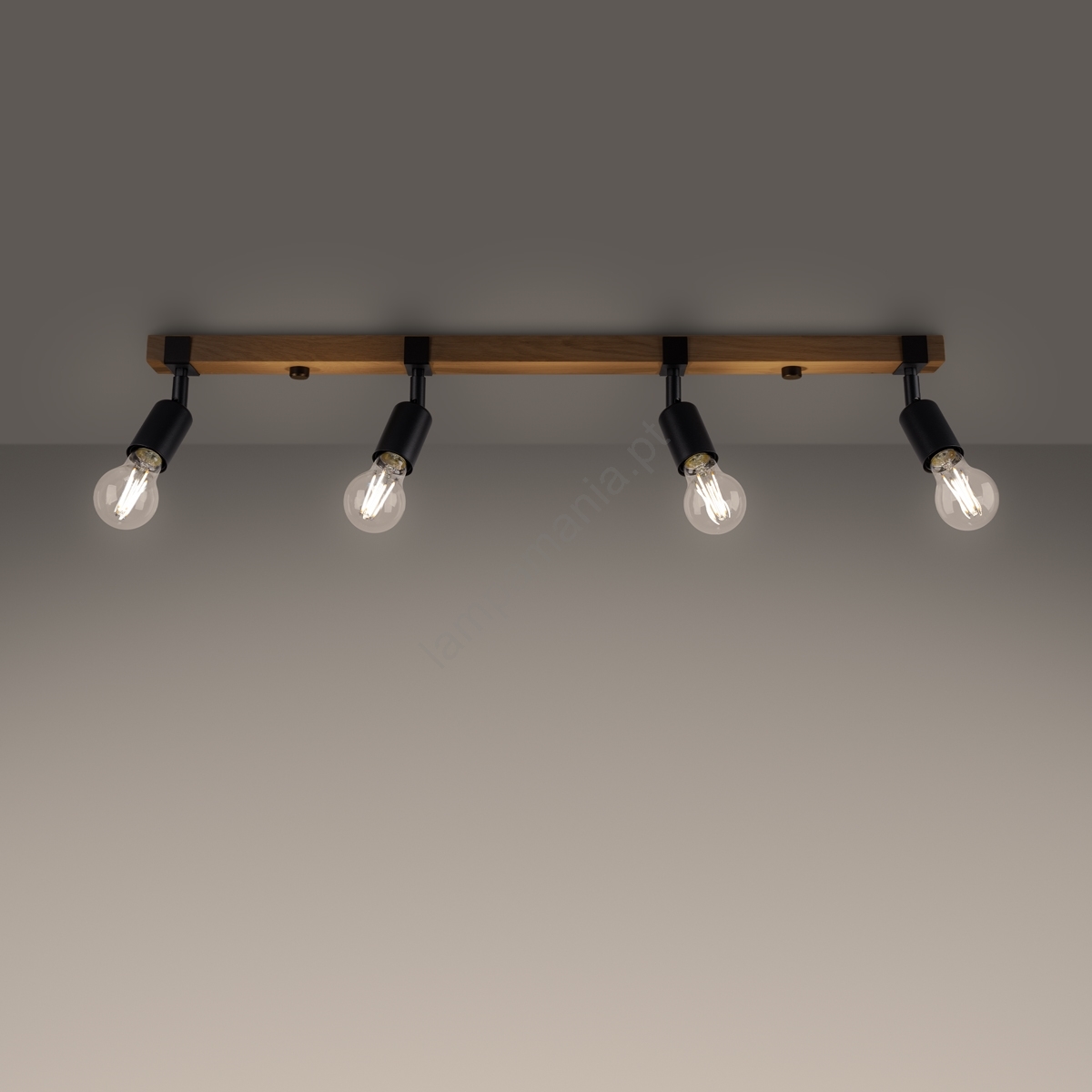 Foco ZUCA 4xE27/15W/230V preto/carvalho caracteriza-se por um design agradável e funcional.  Uma lâmpada com casquilho E27 é adequada para a iluminação Aqui, pode comprar outras lâmpadas a preços vantajosos. Terá um complemento interessante para a sua casa.