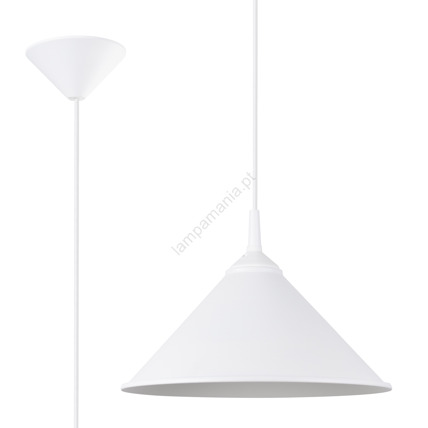 Candeeiro suspenso ZUMA 1xE27/15W/230V diâmetro 30 cm branco caracteriza-se por um design agradável e funcional.  Uma lâmpada com casquilho E27 é adequada para a iluminação Aqui, pode comprar outras lâmpadas a preços vantajosos. Terá um complemento interessante para a sua casa.