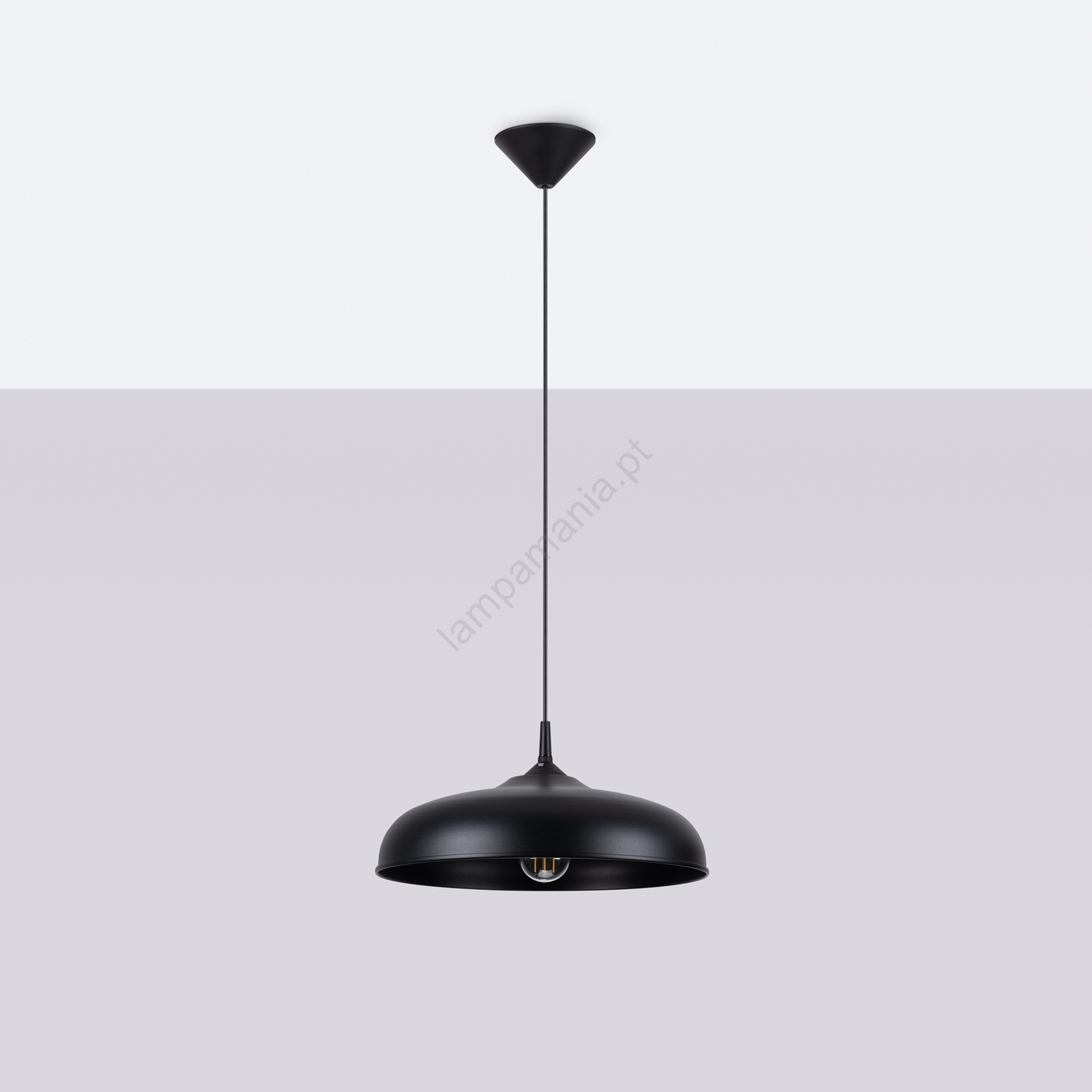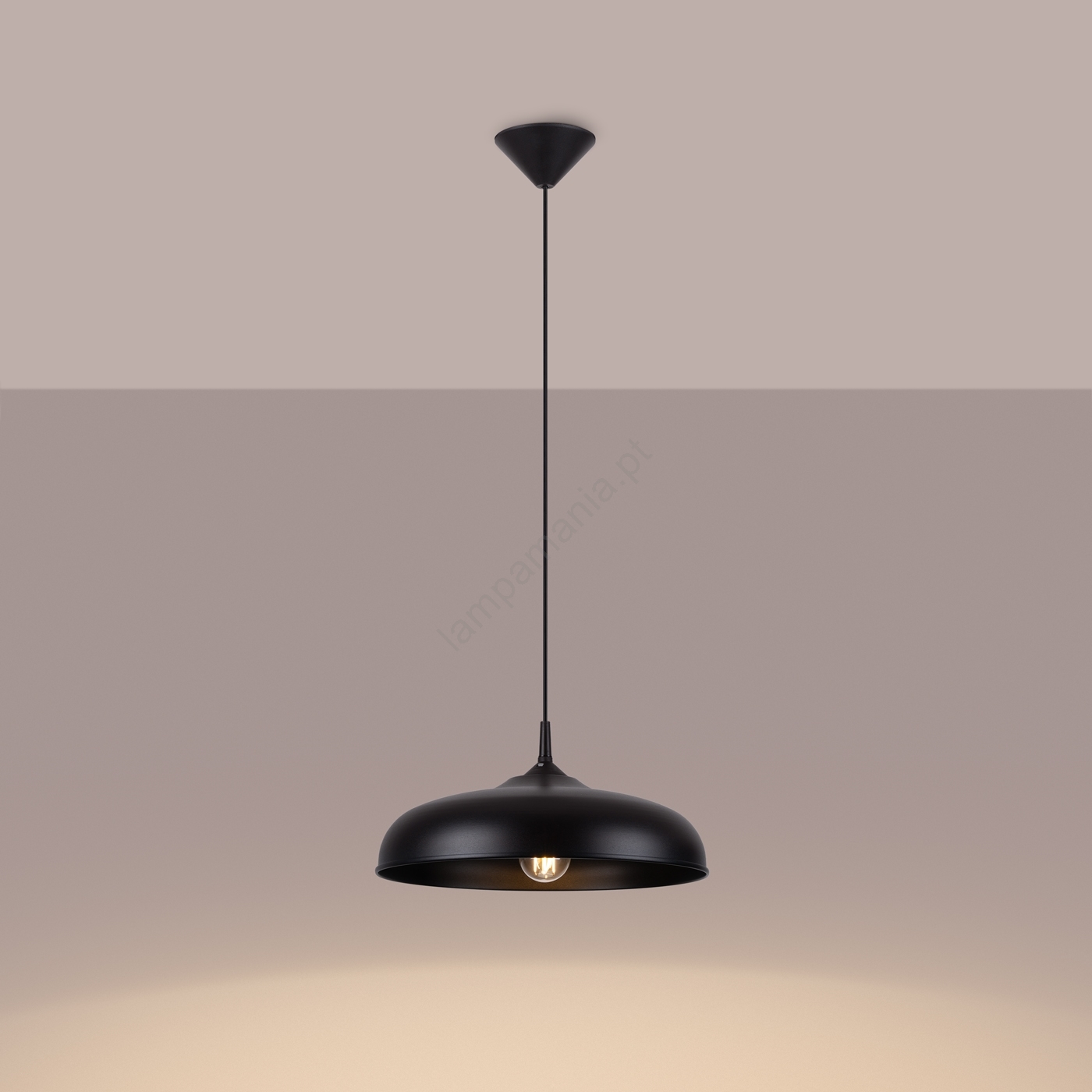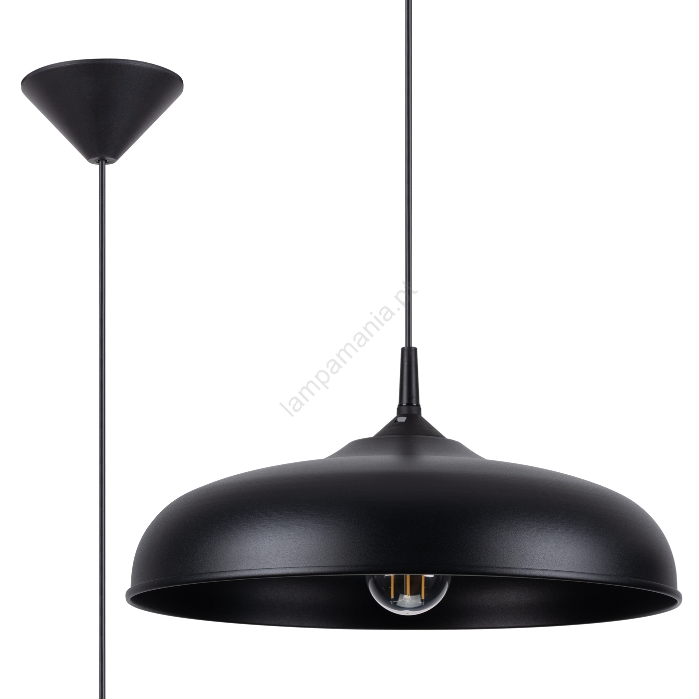Candeeiro suspenso GINA 1xE27/15W/230V diâmetro 38 cm preto caracteriza-se por um design agradável e funcional.  Uma lâmpada com casquilho E27 é adequada para a iluminação Aqui, pode comprar outras lâmpadas a preços vantajosos. Terá um complemento interessante para a sua casa.