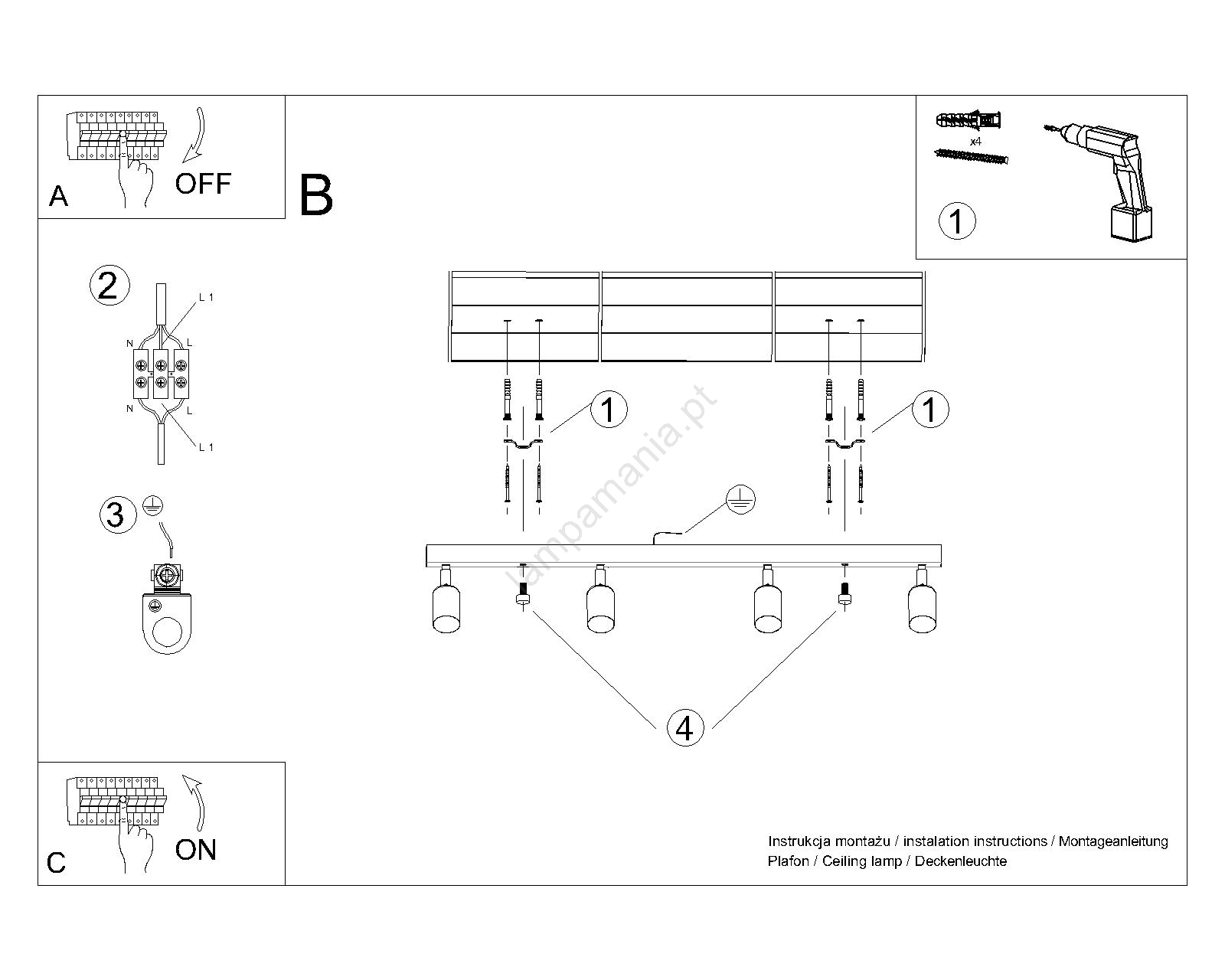 • Foco WINX 4xGU10/10W/230V preto/dourado