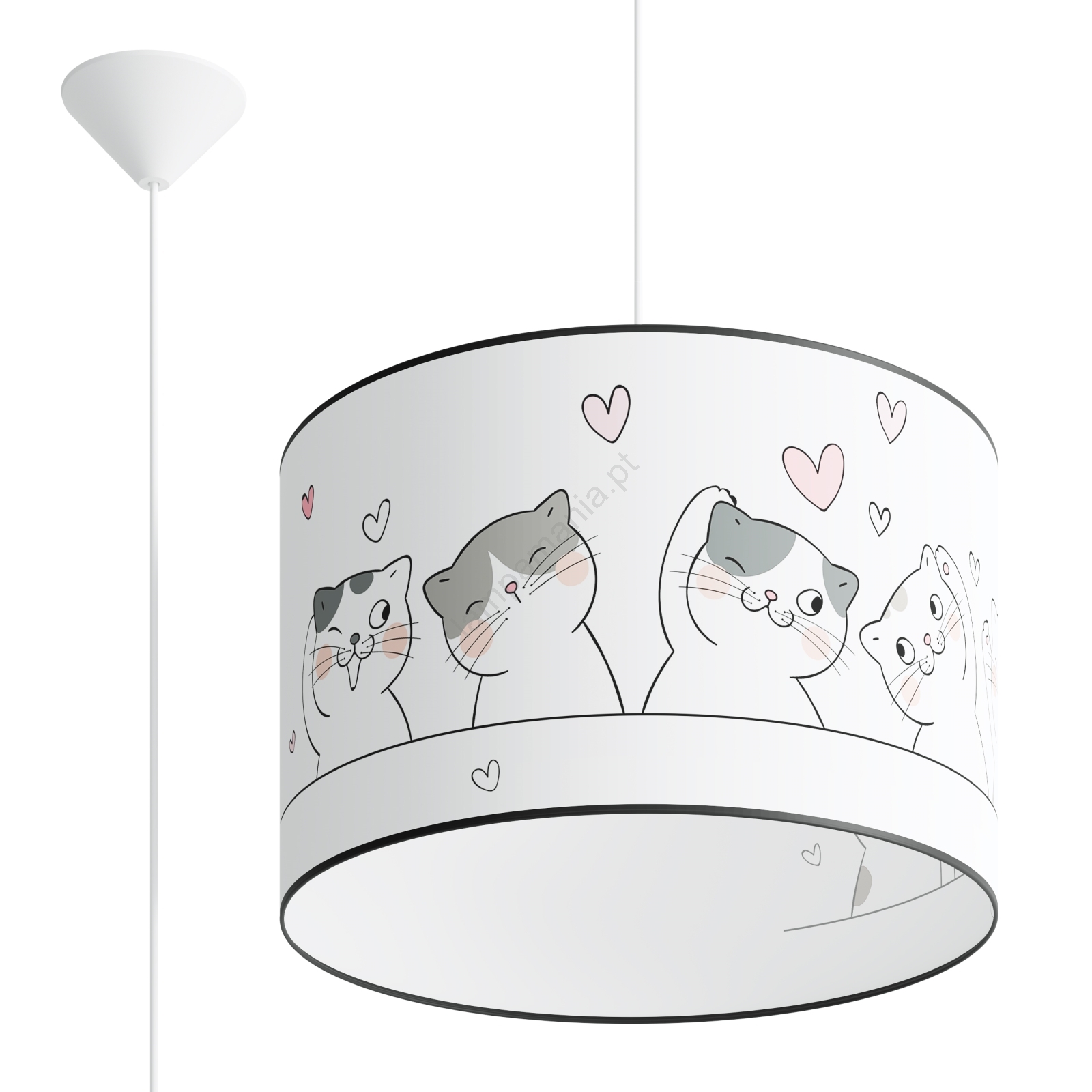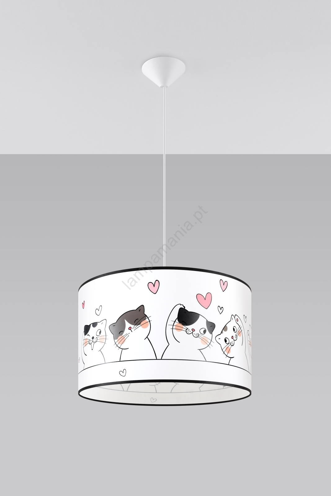 Candeeiro suspenso de criança CAT 1xE27/15W/230V diâmetro 40 cm gato caracteriza-se por um design agradável e funcional.  Uma lâmpada com casquilho E27 é adequada para a iluminação Aqui, pode comprar outras lâmpadas a preços vantajosos. Terá um complemento interessante para a sua casa.