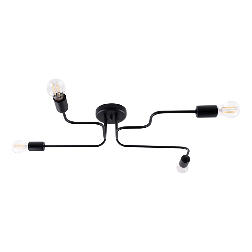 Candeeiro integrado VECTOR 4xE27/15W/230V preto caracteriza-se por um design agradável e funcional.  Uma lâmpada com casquilho E27 é adequada para a iluminação Aqui, pode comprar outras lâmpadas a preços vantajosos. Terá um complemento interessante para a sua casa.