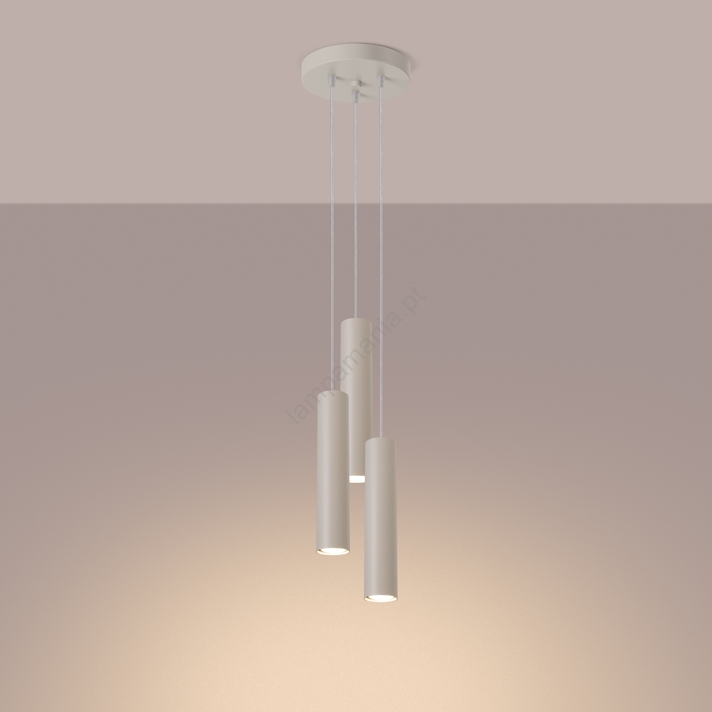 Candeeiro suspenso LAGOS 3xGU10/10W/230V creme caracteriza-se por um design agradável e funcional.  Uma lâmpada com casquilho GU10 é adequada para a iluminação Aqui, pode comprar outras lâmpadas a preços vantajosos. Terá um complemento interessante para a sua casa.