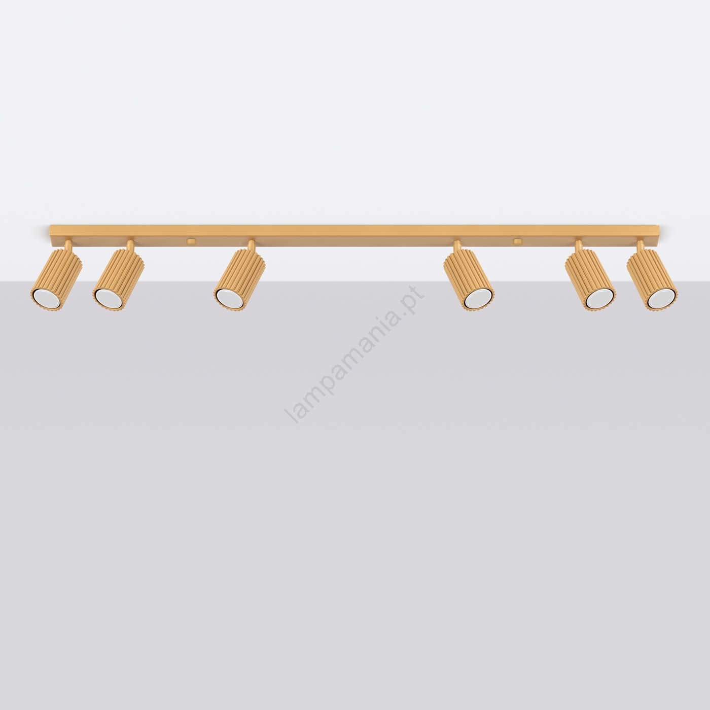 Foco KARBON 6xGU10/10W/230V dourado caracteriza-se por um design agradável e funcional.  Uma lâmpada com casquilho GU10 é adequada para a iluminação Aqui, pode comprar outras lâmpadas a preços vantajosos. Terá um complemento interessante para a sua casa.