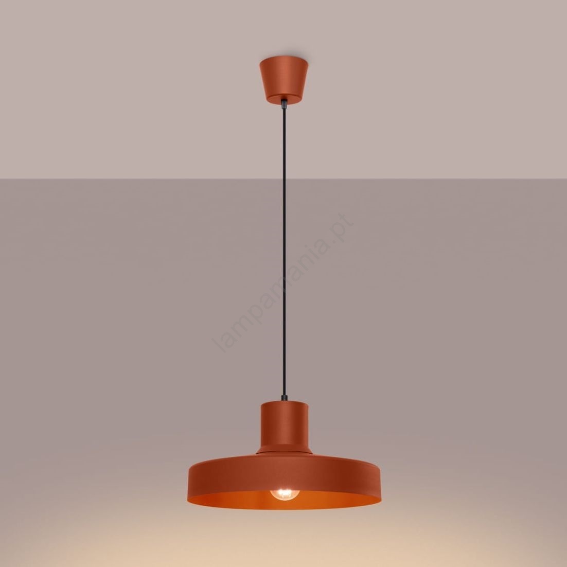 Candeeiro suspenso BILO 1xE27/15W/230V diâmetro 35 cm laranja caracteriza-se por um design agradável e funcional.  Uma lâmpada com casquilho E27 é adequada para a iluminação Aqui, pode comprar outras lâmpadas a preços vantajosos. Terá um complemento interessante para a sua casa.