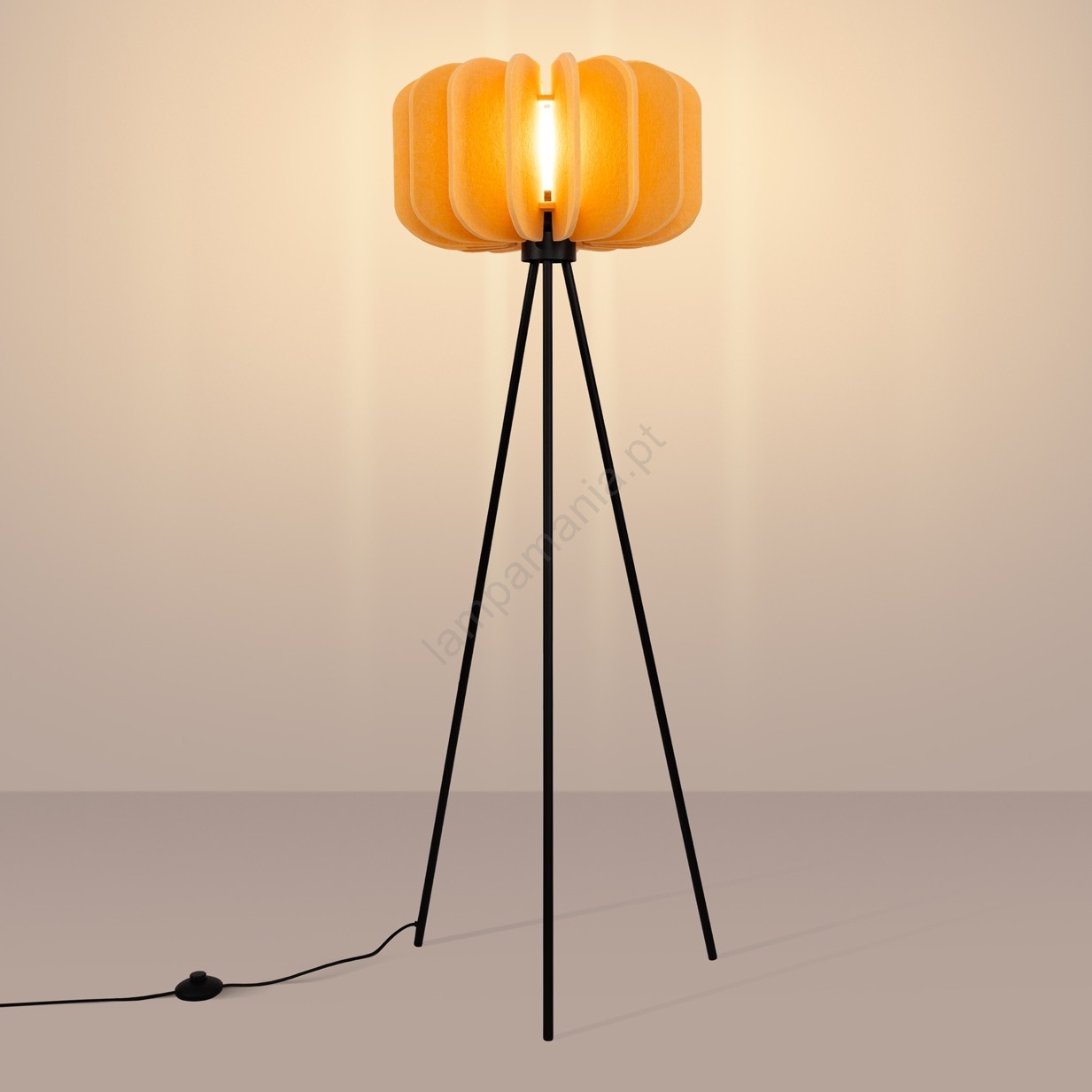 Candeeiro de pé MULA 1xE27/15W/230V amarelo caracteriza-se por um design agradável e funcional.  Uma lâmpada com casquilho E27 é adequada para a iluminação Aqui, pode comprar outras lâmpadas a preços vantajosos. Terá um complemento interessante para a sua casa.