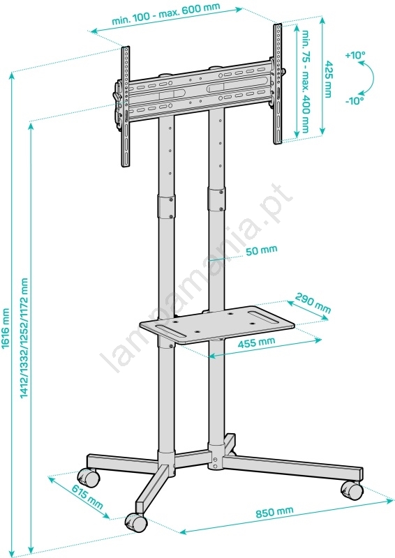 • Possibilidade de fixar o ecrã em 4 posições de altura diferentes.
