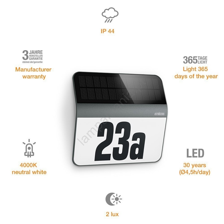 STEINEL 035730 - Número de casa solar LED XSolar LH-N LED/0,03W IP44 2500 mAh