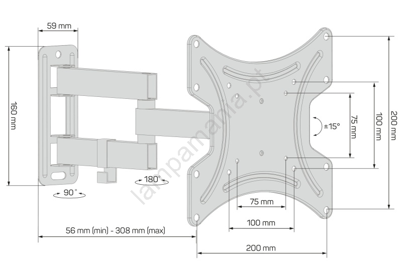 • Lista completa dos espaçamentos VESA suportados: 75 x 75 / 100 x 100 / 200 x 200.