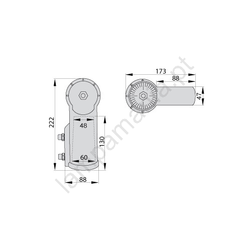 • Suporte para montagem de luminárias de estrada com diâmetro mínimo de 53 mm e máximo de 60 mm.