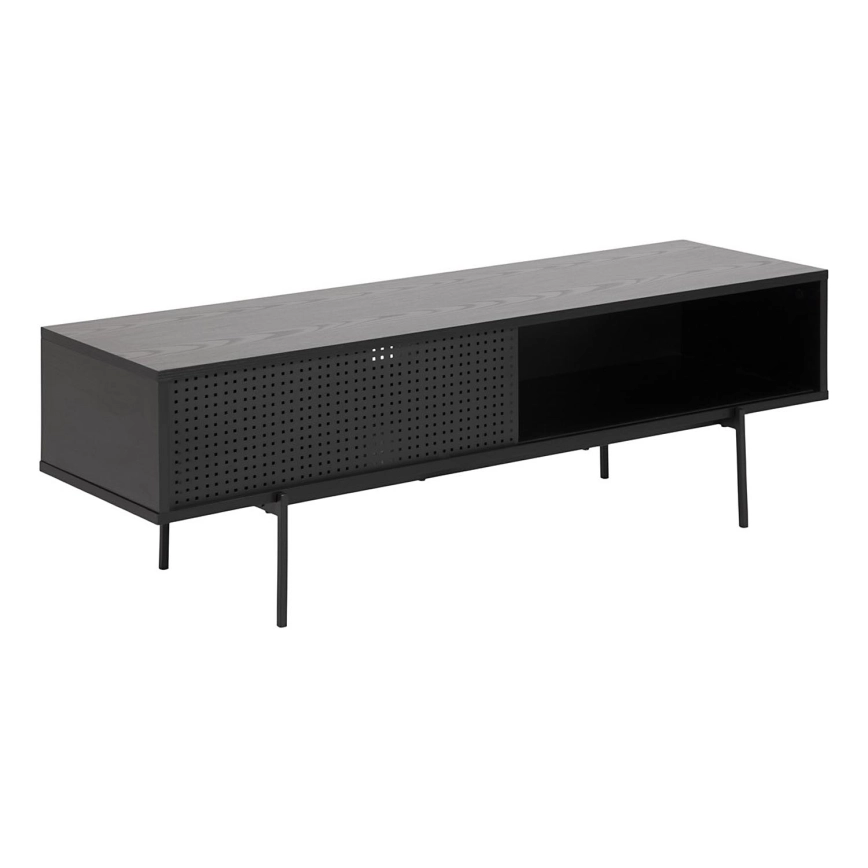 • Este móvel de TV em preto destaca-se pelas linhas puras e pela estrutura leve, sendo um complemento moderno e elegante para qualquer sala de estar.