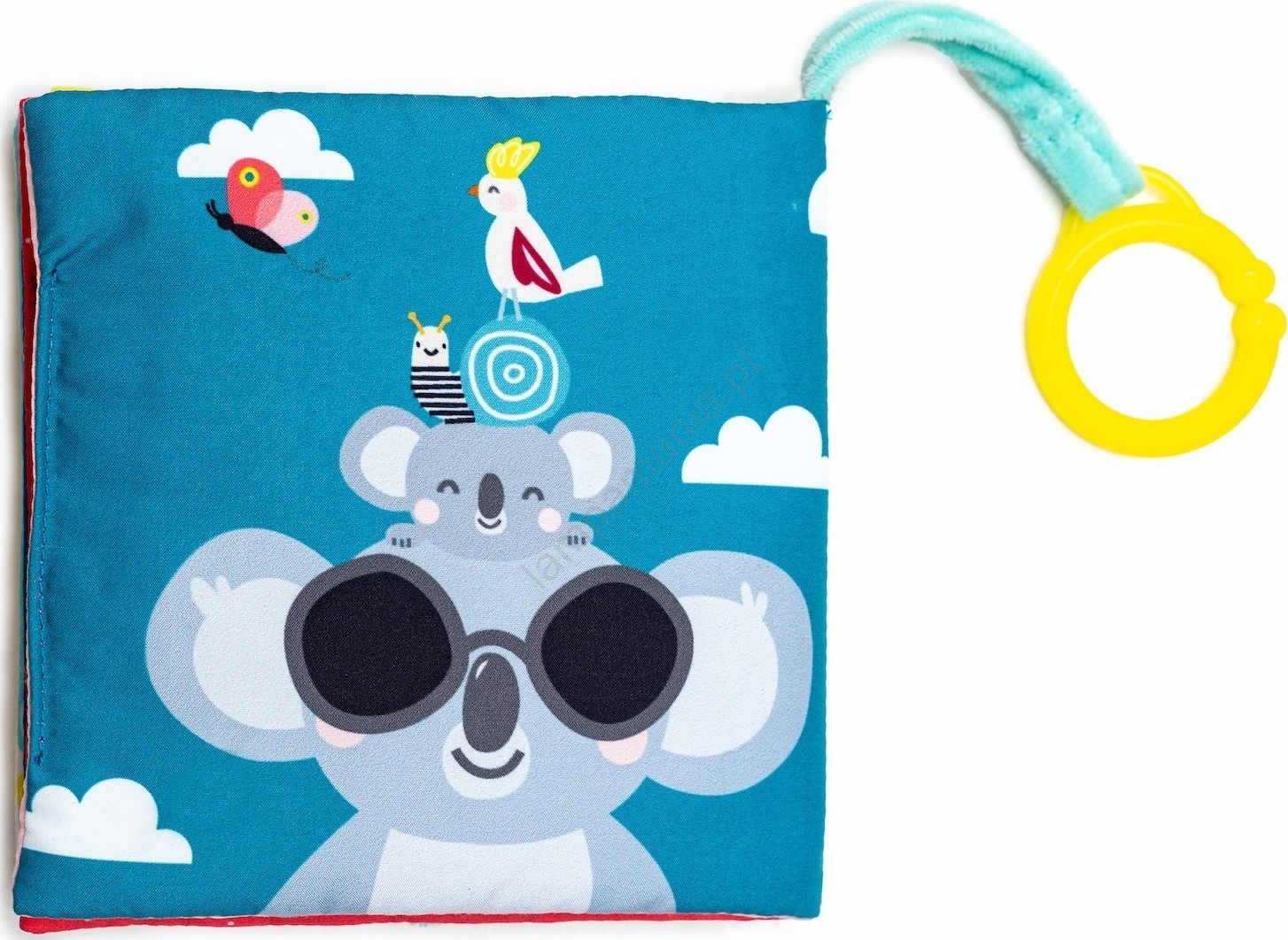• O livro pode ser pendurado com a ajuda de um anel plástico, por exemplo, no assento do carro ou no carrinho de bebê.