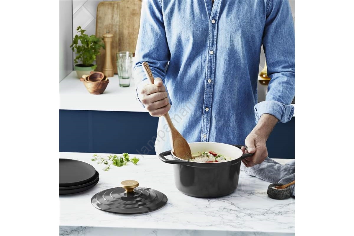 • A panela Tefal Air é fabricada em alumínio fundido de alta qualidade e revestida com uma superfície cerâmica antiaderente.