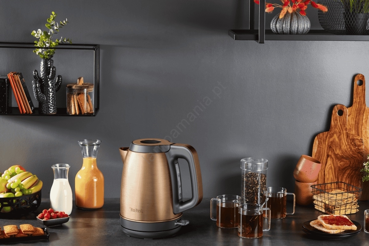• Chaleira elétrica elegante Coppertinto KI280G10, que alia design moderno a funcionalidades para o uso diário.
