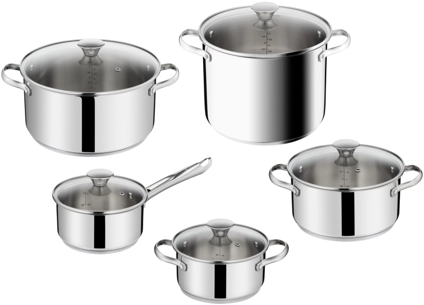 Tefal - Conjunto de 10 peças de panelas DAILY COOK em aço inoxidável