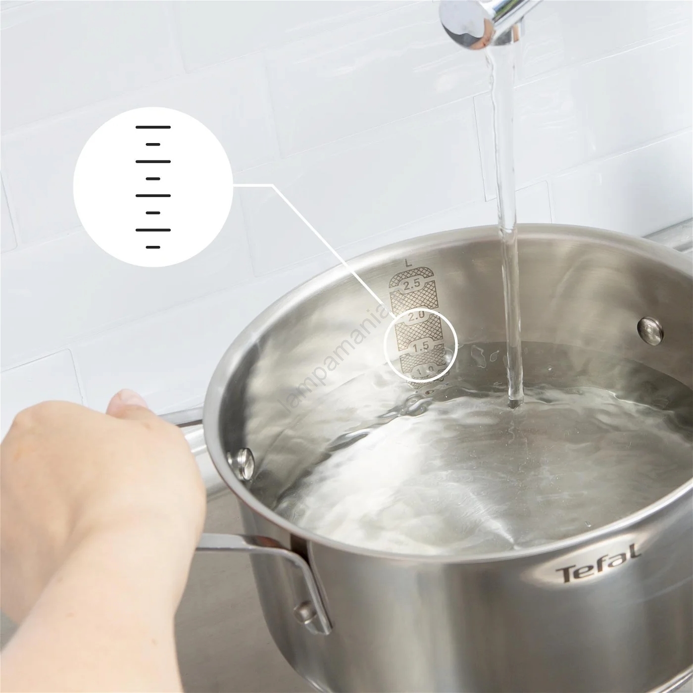 • O interior da caçarola e das panelas Tefal possui marcas de medição para mantê-lo ciente da quantidade de líquido.