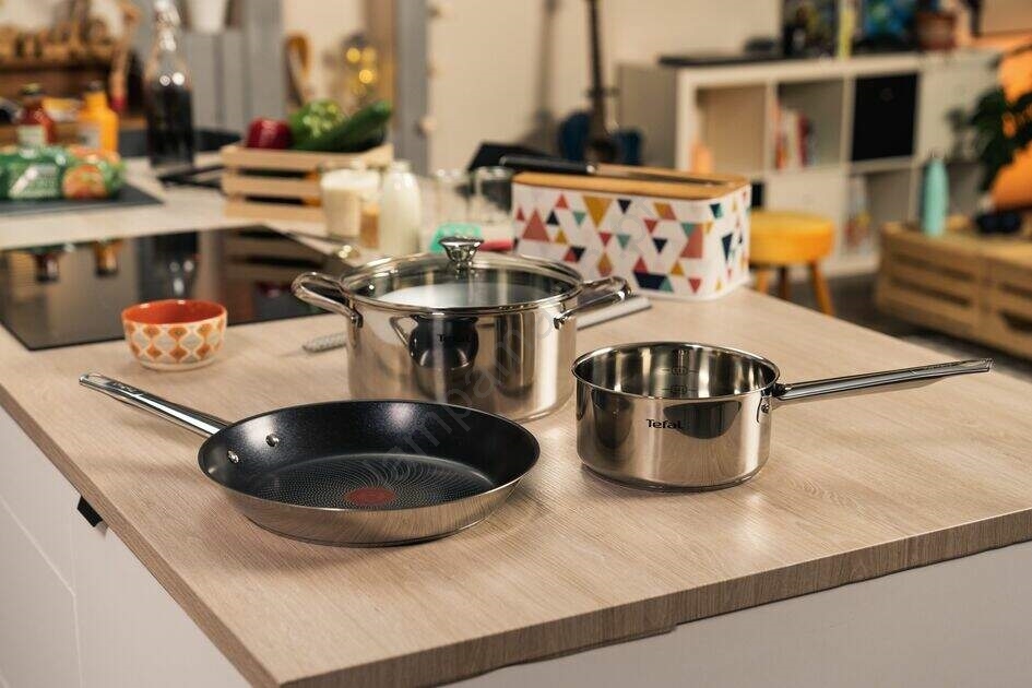 • A linha de panelas de aço inoxidável Cook Eat da marca Tefal é adequada para todos os tipos de fogões.