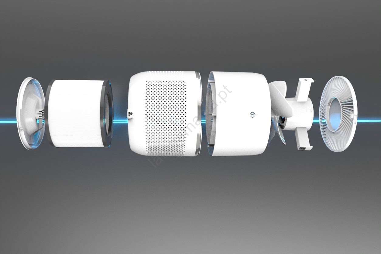• Filtro HEPA - captura partículas no ar ao passar pelo purificador, até 99% das partículas com tamanho de 0,3 micrômetros (por exemplo, pólen, smog, vírus).